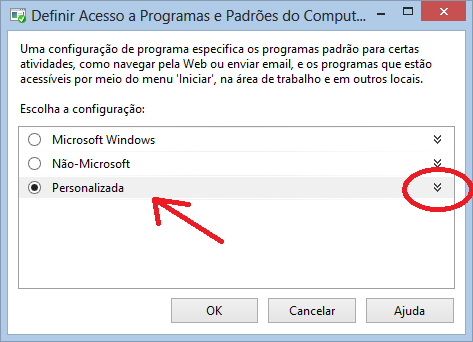 4) Escolha “Personalizada”. “Já está escolhida”, você pode dizer. Eu sei, mas você tem que clicar para expandir as opções. Não é nada intuitivo.