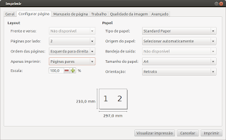Quem não gosta de preservar a natureza? Pois é, no Windows eu achava muito fácil imprimir 4 páginas por folha usando o software padrão da HP, que já me dizia até como inserir o papel na impressora entre a impressão de um lado e a do outro… E no Ubuntu 12.04, como faz?