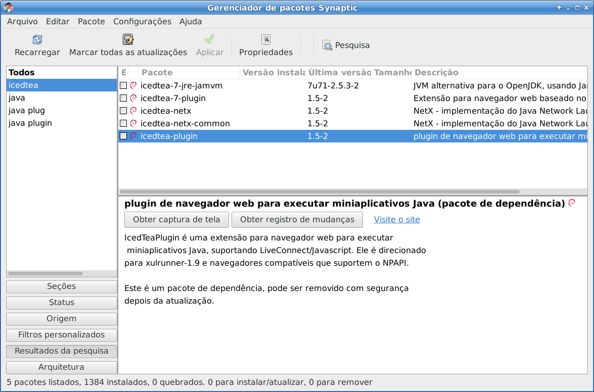 Siga o mesmo procedimento acima, entre no Synaptic e busque icedtea-plugin. A descrição não é lá tão elucidativa, mas explica: